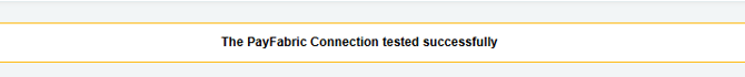 4. If the connection is good, then a success message will be displayed at the top of the form. Otherwise, if a failure message is displayed, please re-verify your PayFabric device ID/Password or network connection.