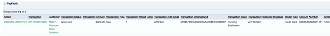 Example of PayFabric transaction details from PayFabric Transactions page