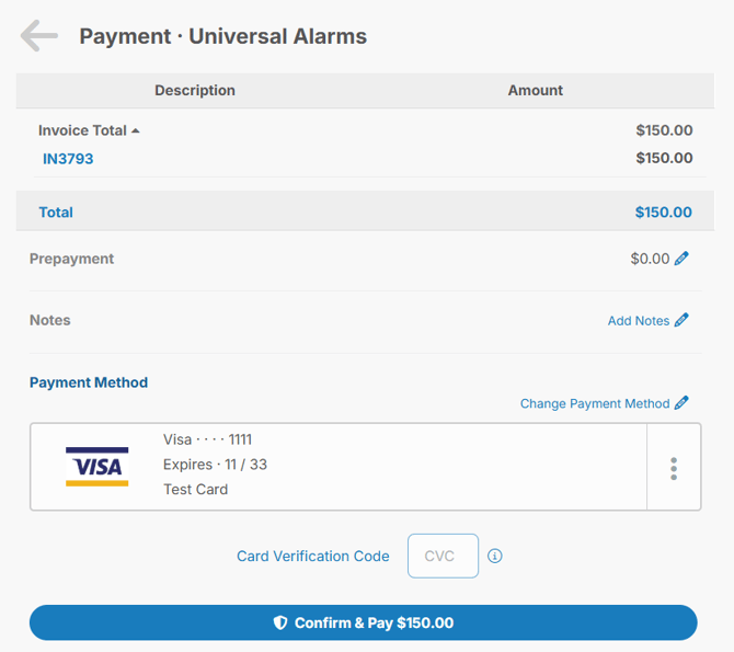- Customer or representative logs into PayFabric Receivables and selects an outstanding invoice to pay.