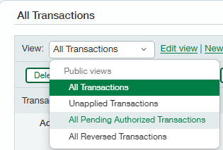 - Payments (applied and unapplied)