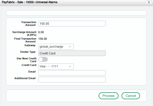 - Click the PayFabric button > Sale